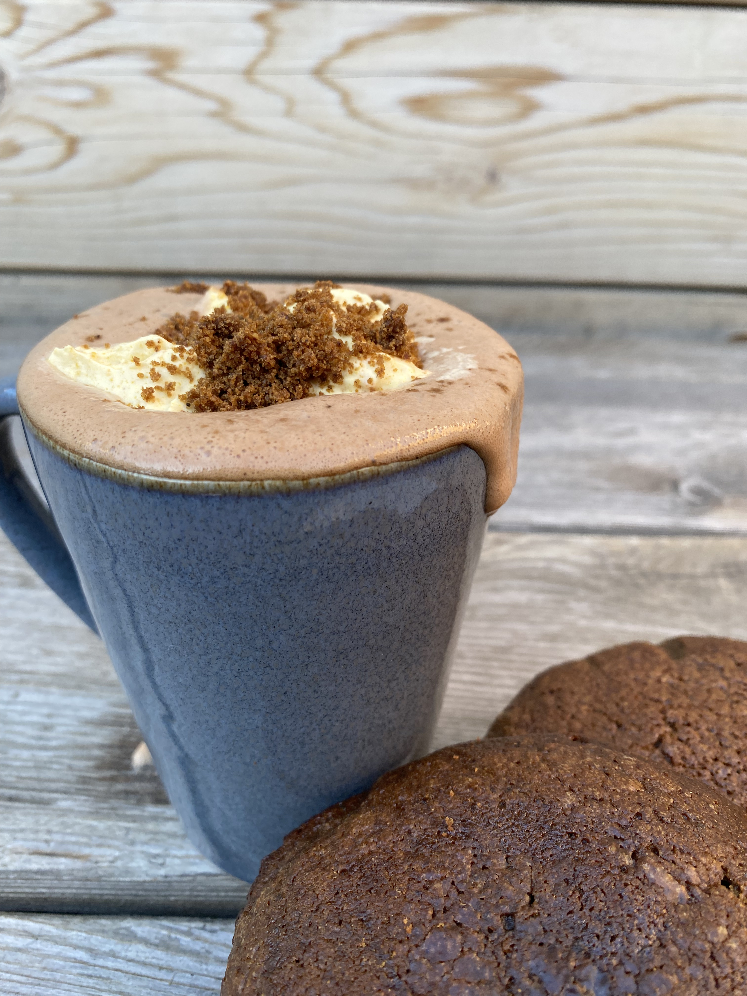 Topped with whipped cream cheese and a hand-made gingersnap crumble, this locally crafted hot chocolate is made completely from scratch. We begin with our in-house stone-ground 74% heirloom chocolate, blended with rich Alberta dairy from Vital Greens Farm and warming Alberta-grown ginger, then gently infused with our own in-house crafted star anise hydrosol. Spicy, creamy, and oh-so-delicious — one sip and you’ll be starstruck.