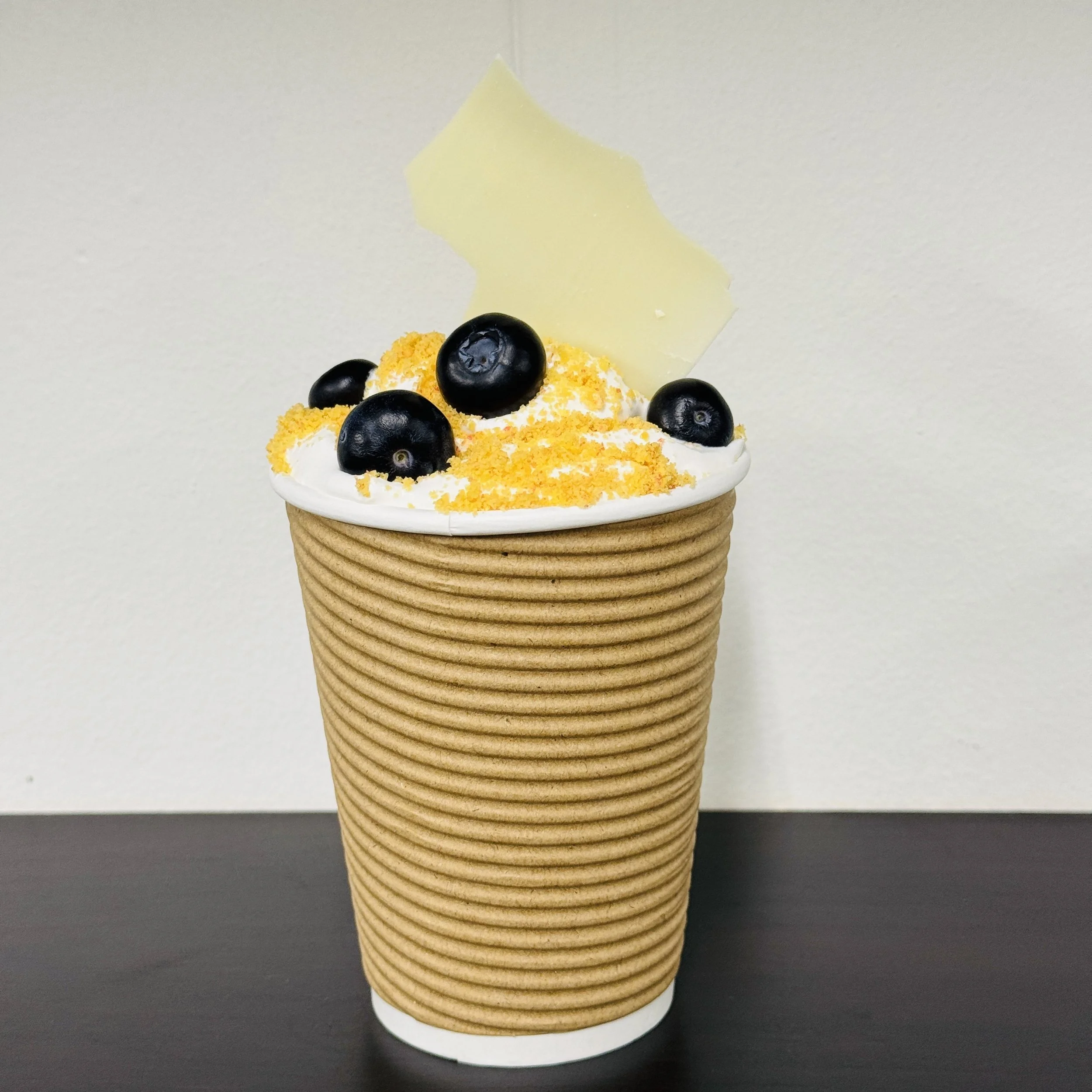 A drink that brings together the creamy sweetness of white chocolate and tangy sparkle of blueberries for a truly indulgent escape